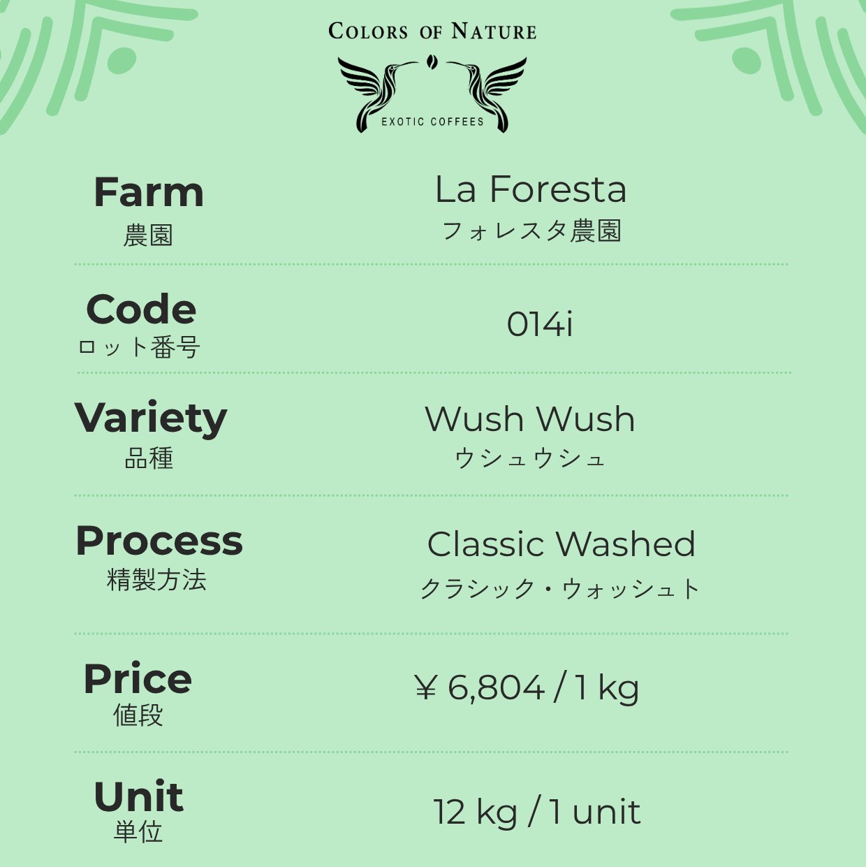 フォレスタ農園 ウシュウシュ Finca La Foresta Wush Wush Classic Washed 014i